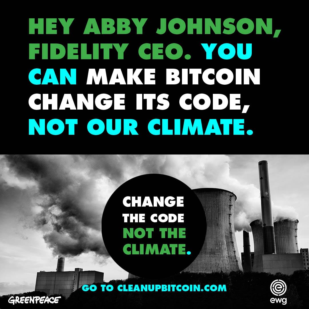 We know who wields influence over the crypto community, from big tech to big banks. Leaders like Elon Musk of Tesla, Jack Dorsey of Block, and Abby Johnson of Fidelity have vested interests in Bitcoin — and the power to affect change. BlackRock, Goldman Sachs, PayPal and many others have a responsibility to help Clean Up Bitcoin.